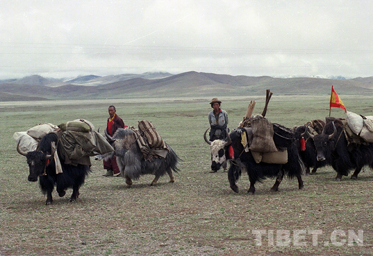 這是藏北草原正在馱物運輸?shù)年笈H海ㄌ普倜?997年攝)
