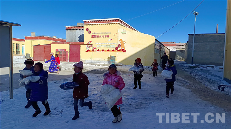 中國西藏網(wǎng)訊 “孩子們,排好隊,快到食堂去領(lǐng)羽絨服。” 央吉措姆老師高興地對一年級的學(xué)生說。待孩子們來到食堂,這里已是熱鬧一片,看到掛著“學(xué)史力行、愛聚藏鄉(xiāng)、童心向黨”愛心羽絨服發(fā)放儀式的橫幅,孩子們才恍然大悟,原來是援藏的叔叔給大家送新羽絨服來了。