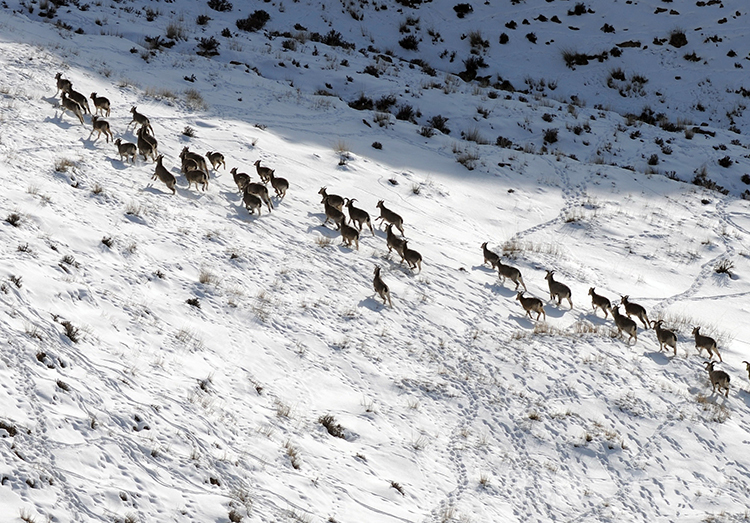這是棲息在藏北高原雪山上的巖羊群(唐召明2017年攝)