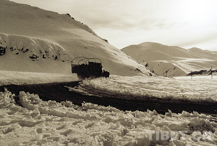 這是藏北高原發(fā)生特大雪災后,那曲地區(qū)(現(xiàn)那曲市)新?lián)屝尥ǖ泥l(xiāng)村公路(唐召明1990年攝)