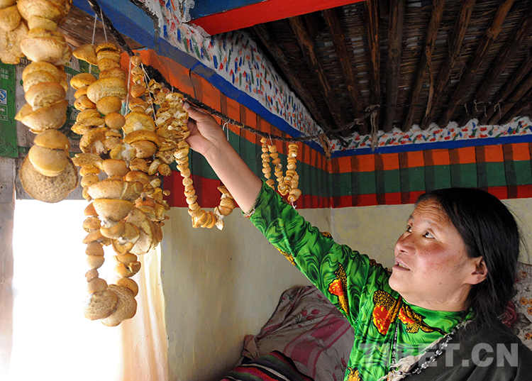 這是斯求卓瑪術后在當地政府投資建設的安居房新家晾曬草原野生蘑菇(唐召明2012年8月3日攝)