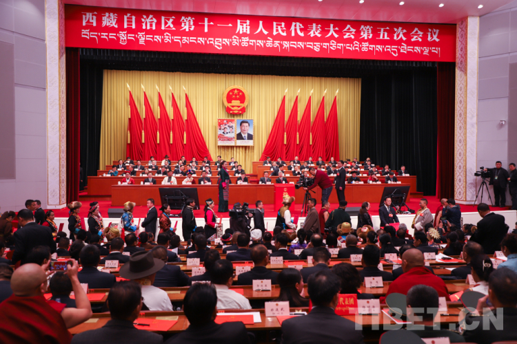 中國西藏網(wǎng)訊 1月7日上午,西藏自治區(qū)第十一屆人民代表大會(huì)第五次會(huì)議舉行第三次全體會(huì)議。圖為會(huì)議現(xiàn)場