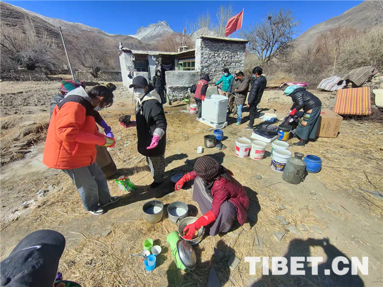 圖為黨員們幫助羅布次仁打掃家務
