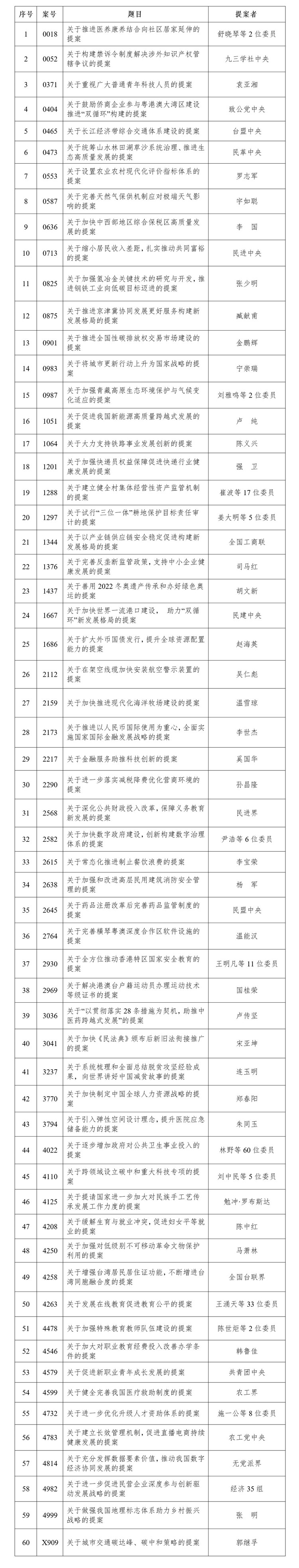 附:全國(guó)政協(xié)2021年度好提案名單