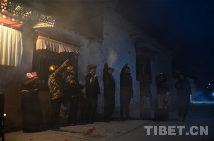 等查斯完成儀式再次回到家中,爆竹聲逐漸沸騰,煙花也照亮了高原的夜空。一家人搬出桌椅聚在家門口,與拎著青稞酒前來的鄰居圍坐一起相互敬酒、相互祝福。漫天煙花見證下,兩家人一起祈福、拋灑糌粑,溫馨又熱烈地完成了向過去一年的告別。(中國西藏網 記者/昂翁洛布 歐帆 趙振宇 旦曲 陳浩力)