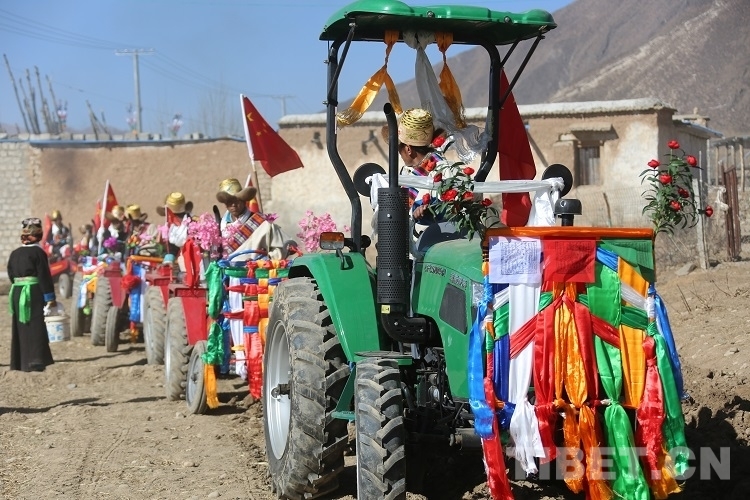 中國西藏網(wǎng) 3月16日,春回高原,金黃的陽光灑滿大地,依照慣例又到了一年一度的春耕春播時節(jié)。在西藏自治區(qū)拉薩市農(nóng)區(qū)的田間地頭,到處都是村民們穿著節(jié)日的盛裝載歌載舞祈愿豐收的場景。