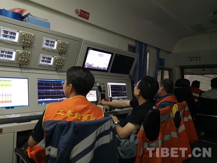進入拉林鐵路前,機組人員對鋼軌探傷車檢測裝置、走行及制動系統(tǒng)進行了細(xì)致的檢查,對探傷系統(tǒng)及參數(shù)等進行調(diào)試。探傷車前端,兩名司機緊盯前方,負(fù)責(zé)運行;探傷操作臺前,副隊長張全福及4名探傷人員不斷調(diào)整相關(guān)參數(shù),連續(xù)6個小時對檢測過的鋼軌數(shù)據(jù)進行認(rèn)真盯控,通過數(shù)據(jù)變化判斷鋼軌是否存在傷損。