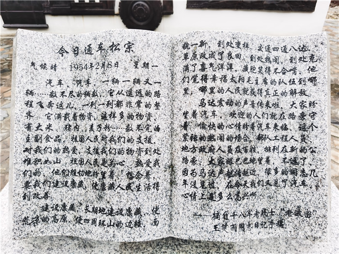 為更好地讓廣大干部群眾和八方游客了解筑路運輸?shù)钠D難困苦、順利通車波密時的動人場景,2021年12月,波密縣對廣場進行了提檔升級,從尊重歷史的角度,進一步論證規(guī)范了廣場名稱?!安芡ㄜ嚰o念廣場”八個鮮紅大字仿佛在講述那段激情燃燒的崢嶸歲月,紅色的碑文篆刻著筑路部隊驚心動魄修筑康藏公路時的艱辛與磨難,王笑雨同志的日記記錄著汽車駛?cè)氩軙r干部群眾臉上的激動與新奇……教育、激勵和引導(dǎo)廣大干部群眾堅定不移感黨恩、聽黨話、跟黨走。(中國西藏網(wǎng) 圖文/波密縣組織部紅色工作專班)
