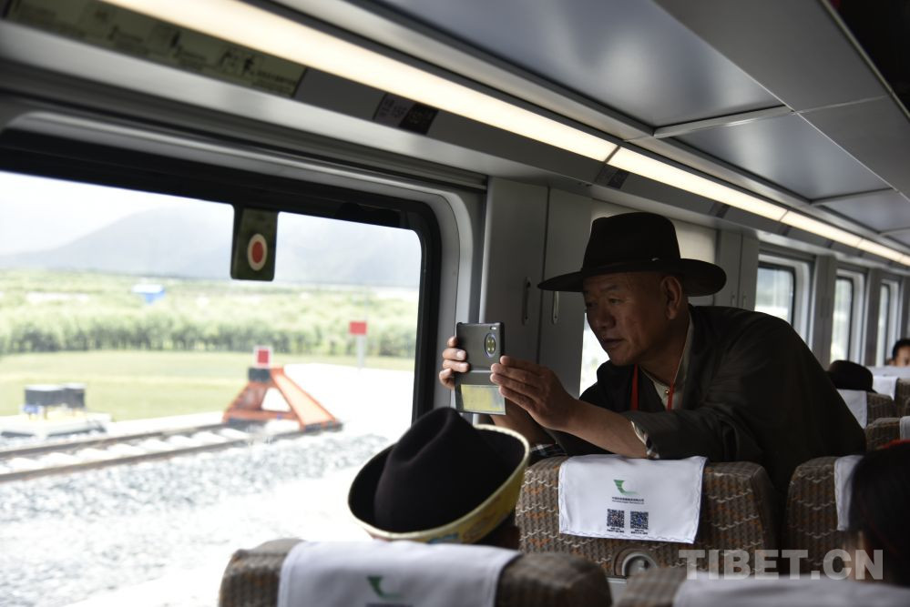 圖為2021年6月25日復(fù)興號高原雙源動力集中動車組即將抵達西藏林芝站,乘客拍照 攝影:王媛媛