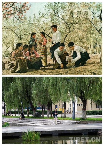 上圖為西藏民族大學(xué)建校初期(時稱西藏公學(xué)),學(xué)生在校園里學(xué)習(xí),圖片由西藏民族大學(xué)提供;下圖為2019年10月,學(xué)生在校園里學(xué)習(xí) 攝影:王媛媛