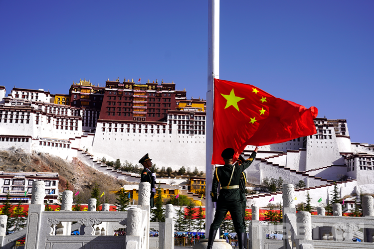 中國西藏網(wǎng)訊 3月28日上午,西藏自治區(qū)首府拉薩市風和日麗,1000余名各族各界群眾聚集在布達拉宮廣場,隆重舉行“升國旗、唱國歌”儀式,慶祝西藏百萬農(nóng)奴解放63周年。