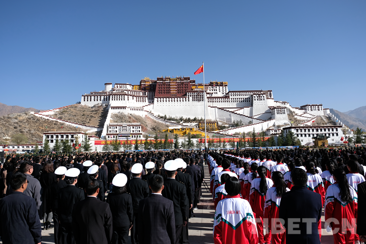 當日,布達拉宮廣場莊嚴肅穆,用漢、藏文書寫的“3·28西藏翻身農(nóng)奴的節(jié)日”橫幅格外醒目。上午9時許,拉薩的朝陽剛剛升起不久,各族各界群眾早已聚集于此。