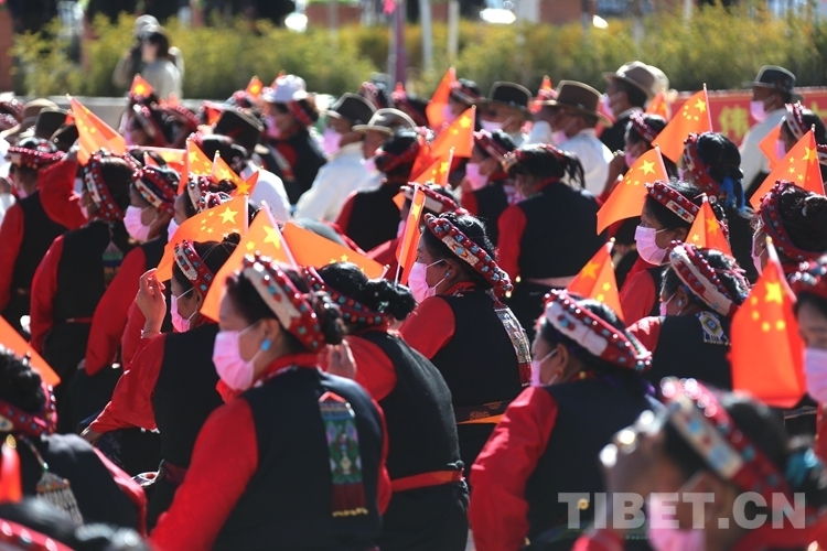 上午10時(shí)30分,伴隨著歌舞《歌頌幸?!罚瑧c祝西藏百萬(wàn)農(nóng)奴解放63周年專場(chǎng)文藝演出拉開(kāi)帷幕?!睹飨扇藖?lái)》《逛新城》《翻身農(nóng)奴把歌唱》《新舊對(duì)比》等節(jié)目在現(xiàn)場(chǎng)掀起一個(gè)又一個(gè)高潮。舞臺(tái)下,滿是身著盛裝的各族群眾,不斷揮舞著手中的五星紅旗,臉上綻放著感動(dòng)和幸福的笑容。