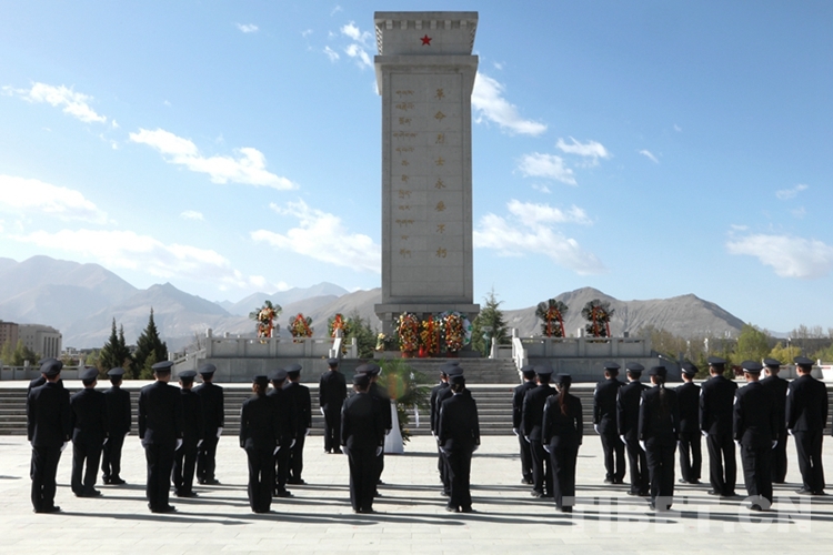圖為西藏邊檢總站執(zhí)法調(diào)查支隊(duì)民警在拉薩烈士陵園開展祭奠活動 攝影:劉明陽