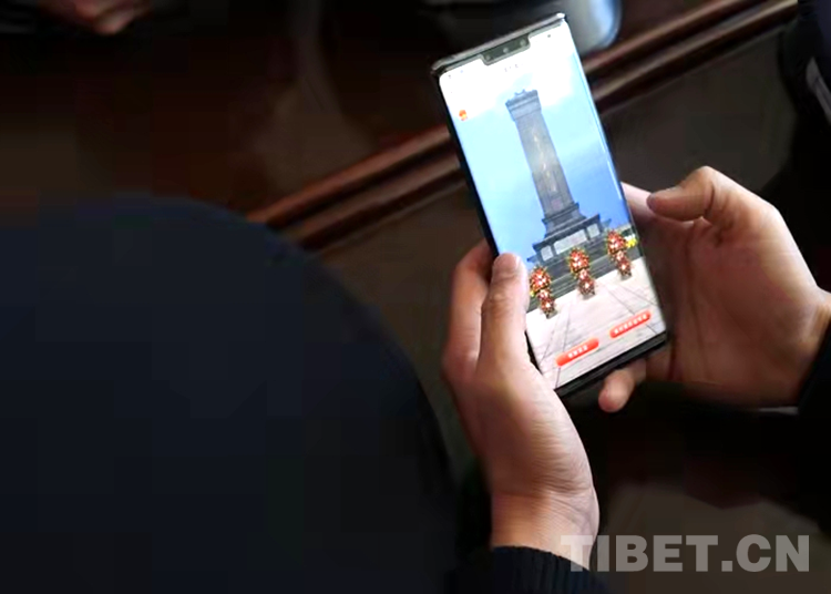 圖為崗嘎邊境派出所民警進行網(wǎng)上祭奠