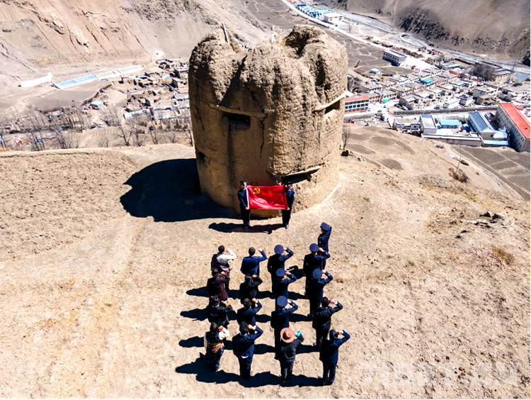 吉隆邊境管理大隊組織民警前往縣烈士陵園,在神圣莊嚴的烈士紀念碑前莊重肅立,向長眠在此的76名烈士敬禮、默哀,全體黨員民警面向紀念碑,在革命烈士見證下重溫入黨誓詞,堅定獻身邊疆、矢志衛(wèi)國的初心使命。貢當邊境派出所聯(lián)合貢當鄉(xiāng)政府工作人員登上山嶺,來到紅色碉堡遺址前,認真傾聽轄區(qū)老黨員講述解放軍同西藏各族人民肝膽相照與敵對勢力進行艱苦卓絕斗爭最終走向勝利的光輝事跡。