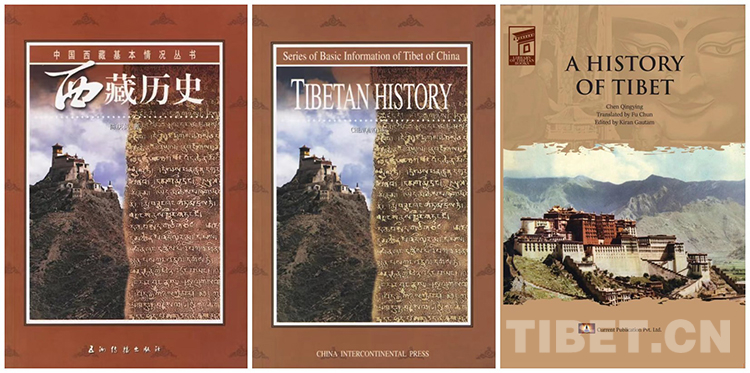圖片分別為陳慶英著《西藏歷史》中文、英文版和尼泊爾出版的英文版封面