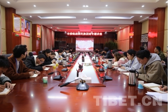 中國西藏網(wǎng)訊 近日,西藏自治區(qū)昌都市委統(tǒng)戰(zhàn)部舉辦“鑄牢中華民族共同體意識”專題講座。市民委黨組成員、一級調(diào)研員巴桑旺堆為干部職工講授民族團結進步模范區(qū)創(chuàng)建工作知識。