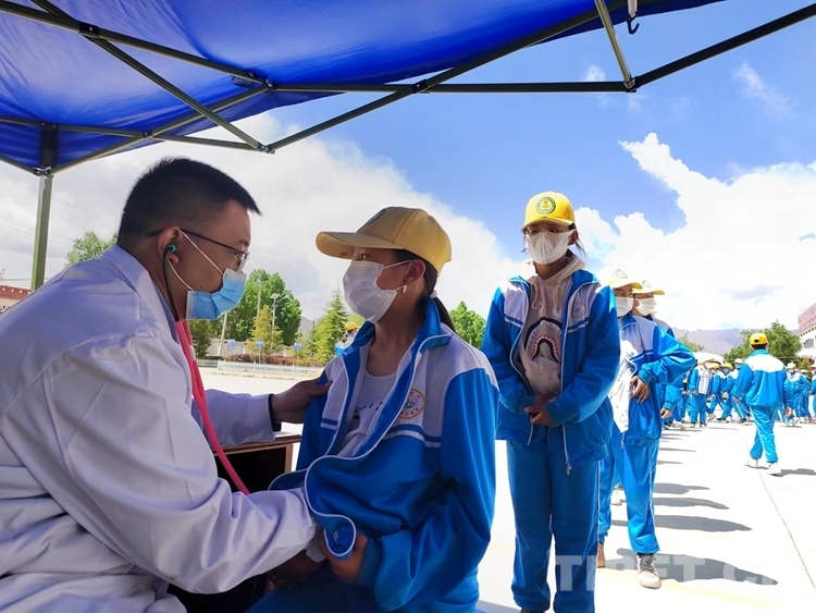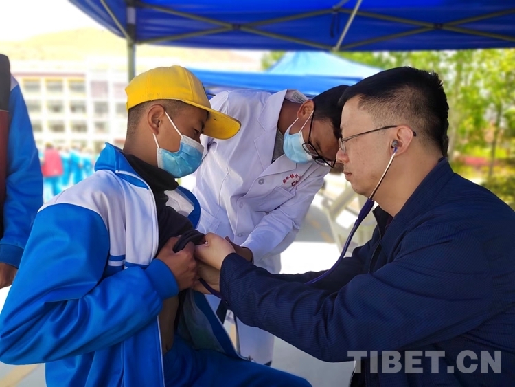 中國西藏網(wǎng)訊 4月22日,西藏自治區(qū)拉薩市曲水縣小學(xué)的操場上,600多名小學(xué)生有序站隊(duì),來自南京醫(yī)科大學(xué)第二附屬醫(yī)院“心佑工程”團(tuán)隊(duì)的醫(yī)生們,手拿聽診器,各人負(fù)責(zé)一個方陣的學(xué)生,開展初步聽診,開始了為期5天的全面篩查工作。