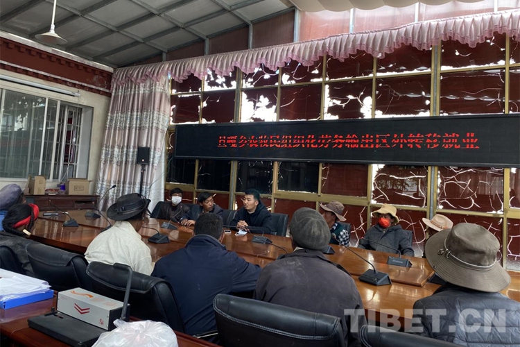圖為旦嘎鄉(xiāng)組織開展2022年赴新疆區(qū)外“組團(tuán)式”就業(yè)暨第一批跨區(qū)“點(diǎn)對(duì)點(diǎn)”組織化勞務(wù)輸出服務(wù)