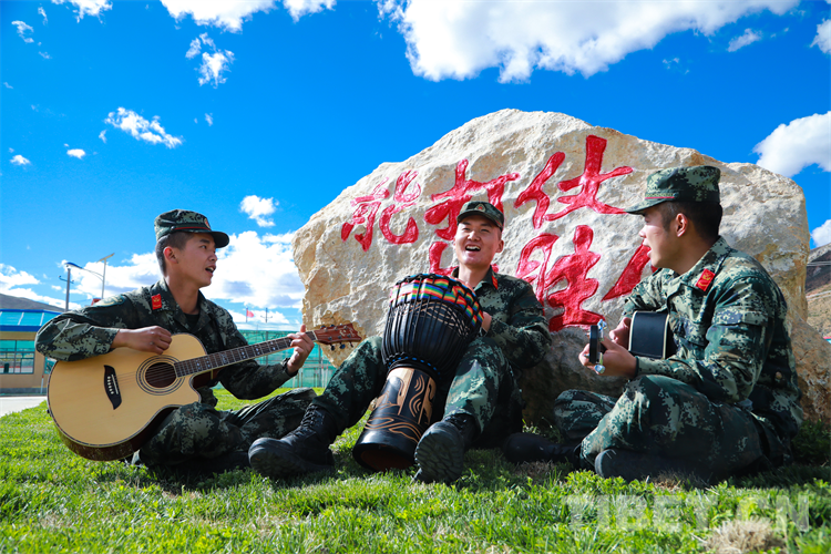 中國西藏網(wǎng)訊 近日,駐守在平均海拔4300米的西藏自治區(qū)昌都市八宿縣邦達(dá)鎮(zhèn)的武警第二機動總隊某支隊官兵,充分發(fā)揮興趣愛好特點,開展了樂隊演奏、書香軍營、讀書分享會等特色軍營文化活動,豐富了高原軍營文化生活,進一步鑄牢了青年官兵扎根高原、建設(shè)邊疆的堅定理想信念。圖為該支隊官兵正在彈奏自編歌曲《青春高原》 攝影:陸文凱(中國西藏網(wǎng) 通訊員/陸文凱)
