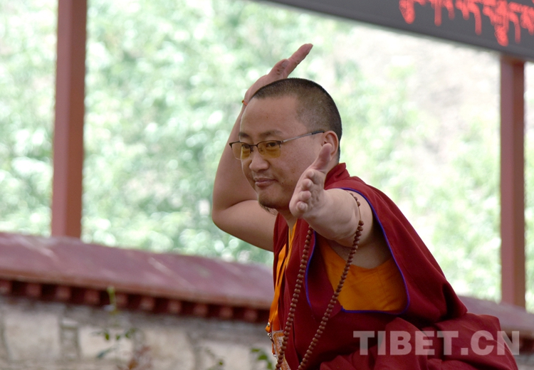 21日下午,西藏佛學(xué)院辯經(jīng)場(chǎng)巨大幕布下,來(lái)自西藏自治區(qū)、云南省的31名考僧正圍繞《俱舍論》《戒律論》進(jìn)行互辯?,F(xiàn)場(chǎng),只見(jiàn)格魯、寧瑪、苯波三個(gè)教派的考僧以及考評(píng)老師和西藏佛學(xué)院學(xué)僧各自圍坐。坐者為立宗者、站立者為辯手,站立者圍繞立論主題拋出佛學(xué)妙語(yǔ),坐者認(rèn)真聆聽(tīng)、巧妙應(yīng)對(duì)?;マq雙方氣氛熱烈,觀摩者不時(shí)唏噓、歡笑以表反對(duì)或認(rèn)同。
