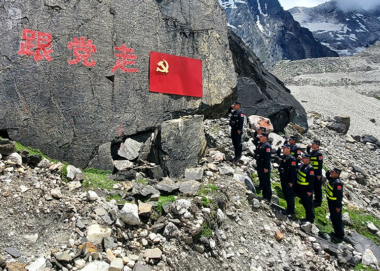 圖為邊巴邊境派出所民警在巡邊踏查途中重溫入黨誓詞 曾勇攝