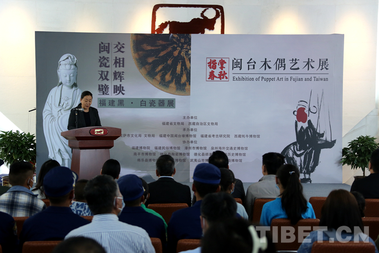 圖為“閩瓷雙璧·交相輝映——福建黑、白瓷器展”和“指掌春秋——閩臺木偶藝術(shù)展”在西藏牦牛博物館開幕 攝影:王佳豪