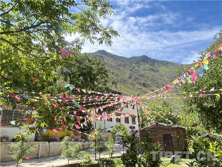 走進位于西藏自治區(qū)昌都市芒康縣曲孜卡鄉(xiāng)達許村的格桑花園農(nóng)家樂,綠草如茵,小木屋包房錯落地掩映在郁郁蔥蔥的樹木當中。一株大核桃樹亭亭如蓋,樹上的秋千給園子增添幾分童趣。