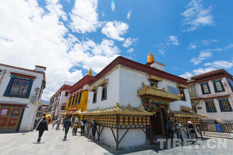“先有大昭寺,后有八廓街”。拉薩古城的中心,大昭寺殿宇巍峨,凌空御風(fēng),桑煙繚繞,金碧輝煌。大殿里供奉的釋迦牟尼十二歲等身佛像,是文成公主從長(zhǎng)安帶來(lái)的,佛教信教群眾將其視為心目中的至寶,從春到冬川流不息地圍繞著它轉(zhuǎn)經(jīng)。千百年來(lái),三條轉(zhuǎn)經(jīng)路的中圈——八廓街,已成為全世界獨(dú)具特色和魅力的傳統(tǒng)文化街區(qū)之一。