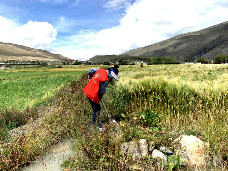 圖為志愿服務(wù)隊(duì)志愿者們?yōu)檗r(nóng)田灌溉