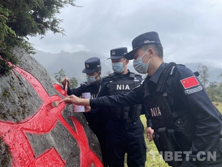 9月30日,林芝邊境管理支隊南伊邊境派出所組織為東拉山口戍邊石開展了“換新衣”活動。