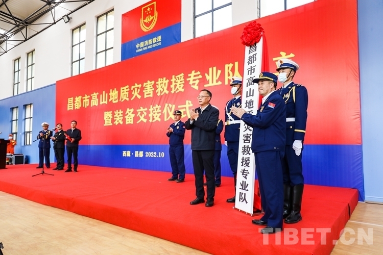 中國西藏網(wǎng)訊 10月6日,西藏自治區(qū)昌都市高山地質(zhì)災害救援專業(yè)隊成立暨裝備交接儀式舉行,這是西藏首支高山地質(zhì)災害救援專業(yè)隊。