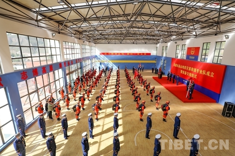 圖為昌都市高山地質(zhì)災害救援專業(yè)隊成立暨裝備交接儀式現(xiàn)場