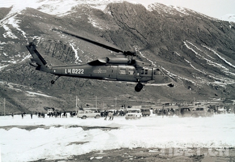 旋即,首都北京來電,中央派運輸機救災(zāi)空投物資。3月27日,銀鷹展翅藏北高原,給被大雪圍困的牧民投下了糌粑、青稞、燃料、衣物和雪鏡等必需品。不幾日,中央又電令兩架“黑鷹”直升飛機投入到緊張的抗災(zāi)救災(zāi)工作中。