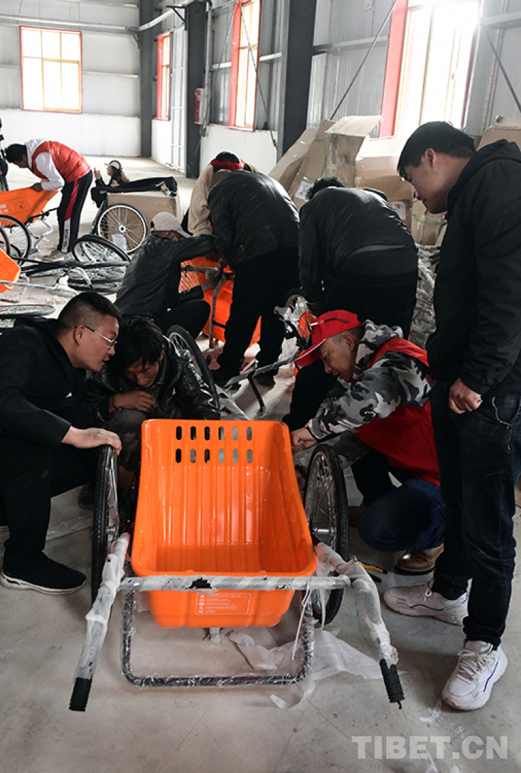 這是北京建藏援藏工作者協(xié)會志愿組服務(wù)人員在巴青縣指導(dǎo)牧民群眾安裝高原撿拾車(唐召明2021年9月14日攝)