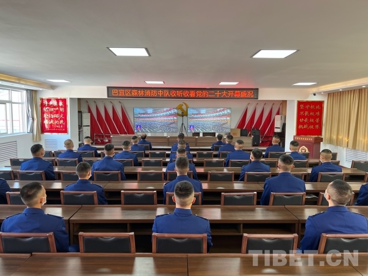 圖為林芝市森林消防支隊(duì)組織收聽收看黨的二十大開幕會 圖片由林芝市委宣傳部提供