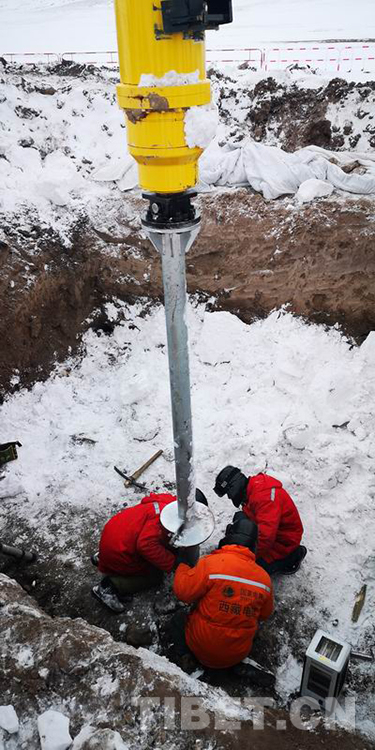 圖為在國網(wǎng)西藏電力阿里聯(lián)網(wǎng)工程螺旋錨施工現(xiàn)場