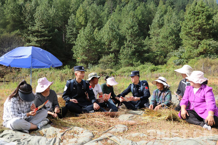 在田間地頭,趁著村民正坐在田坎上休息,“背包民警”向大家介紹:“習近平總書記在二十大報告中提出,增進民生福祉,提高人民生活品質(zhì)……”“背包民警”邊宣講邊向村民們發(fā)放了自己印發(fā)的黨的二十大精神宣講手冊,據(jù)了解,考慮到轄區(qū)群眾以中老年人為主,大多數(shù)認識漢字不多,所以“二十大精神宣講手冊”采取圖文并茂的方式,用最通俗易懂的話向群眾解釋二十大報告的內(nèi)容。