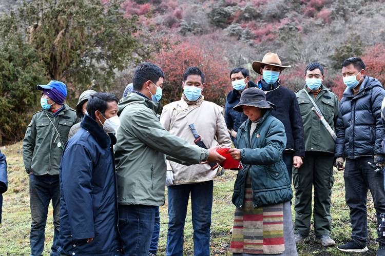 中國西藏網(wǎng)訊 日前,西藏自治區(qū)山南市玉麥鄉(xiāng)玉麥村第一書記索朗頓珠組織護(hù)邊員們開始了新一次的巡邏。臨行前,黨的二十大代表、“七一勛章”獲得者卓嘎特意叮囑索朗頓珠巡邏時(shí)要注意安全,走到哪里,就要把國旗帶到哪里,并把一面嶄新的國旗交到了索朗頓珠的手里。