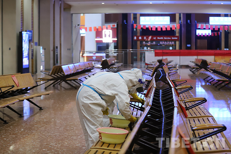 圖為拉薩火車站組織在站集中管理的干部職工分組分區(qū)進(jìn)行站區(qū)衛(wèi)生全面清理 攝影:李海星