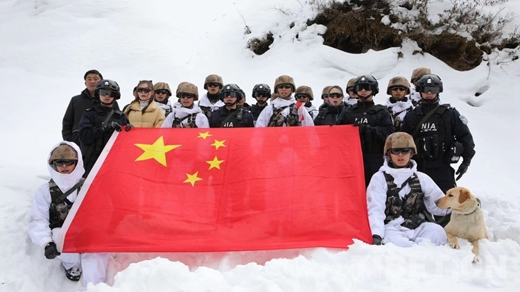 圖為林芝邊境管理支隊(duì)南伊邊境派出所與駐地軍警開展聯(lián)合巡邏 攝影:馬智慧