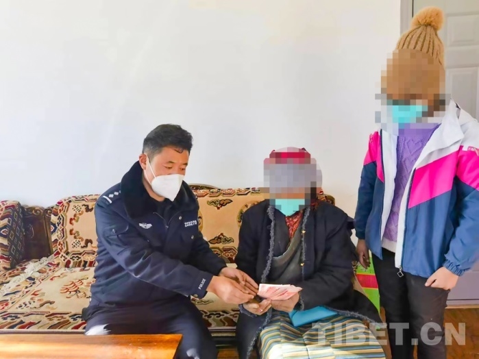 圖為江孜縣公安局藏改鄉(xiāng)派出所民警慰問困難群眾