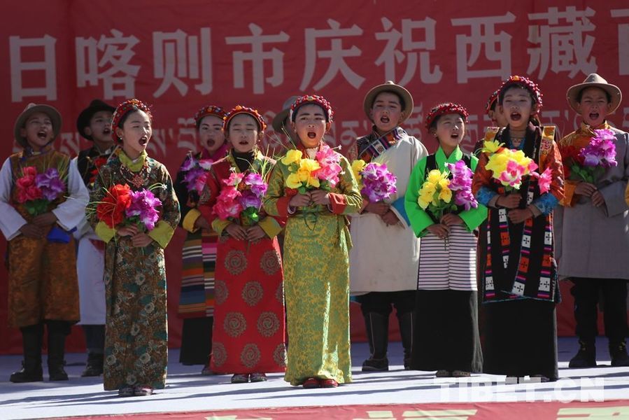 圖為紀(jì)念西藏百萬農(nóng)奴解放63周年時(shí),日喀則的小朋友載歌載舞,歡慶節(jié)日 攝影:王佳豪
