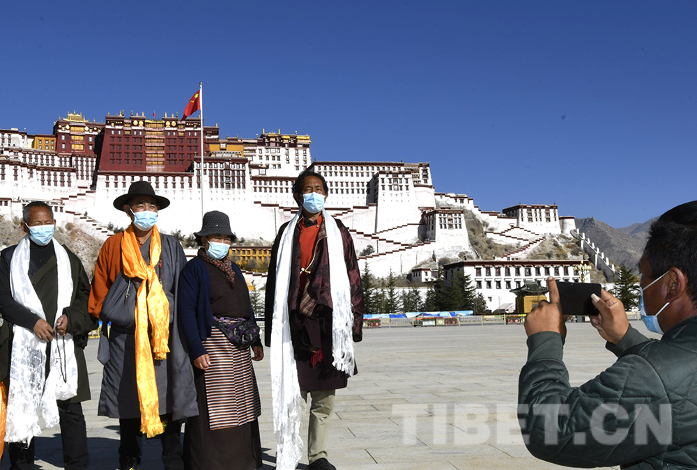 圖為2022年12月初,拉薩市各旅游景點(diǎn)恢復(fù)開(kāi)放,游客在布達(dá)拉宮廣場(chǎng)拍照留念 攝影:王媛媛