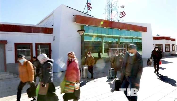 圖為從安多火車站出站的乘客