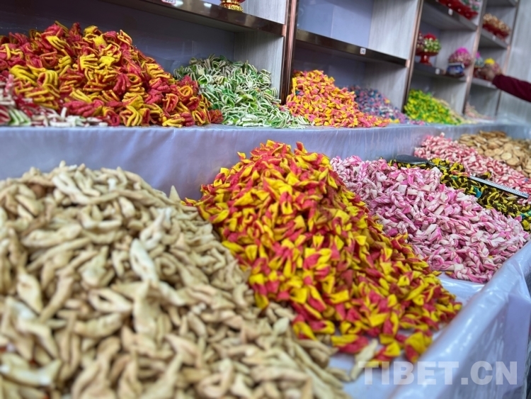 圖為年貨市場(chǎng)里的各類“卡塞” 攝影:次旦拉姆