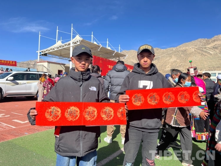 圖為群眾拿到寫有“心想事成”字樣的書法作品 攝影:德吉卓瑪