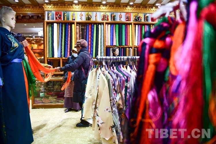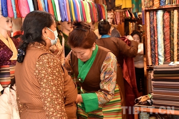 在西藏自治區(qū)拉薩市老城區(qū)的八廓街,花樣繁多的藏裝店構(gòu)成一道絢爛風(fēng)景,店中選購藏裝的顧客,既有本地人,也不乏口音各異的外地游客。