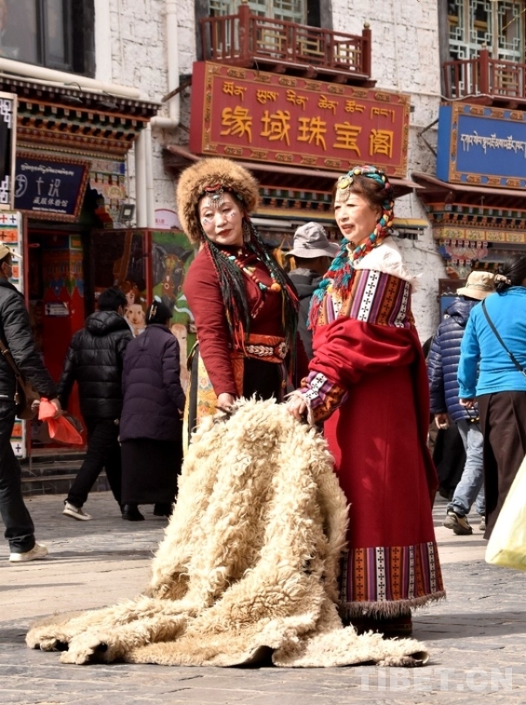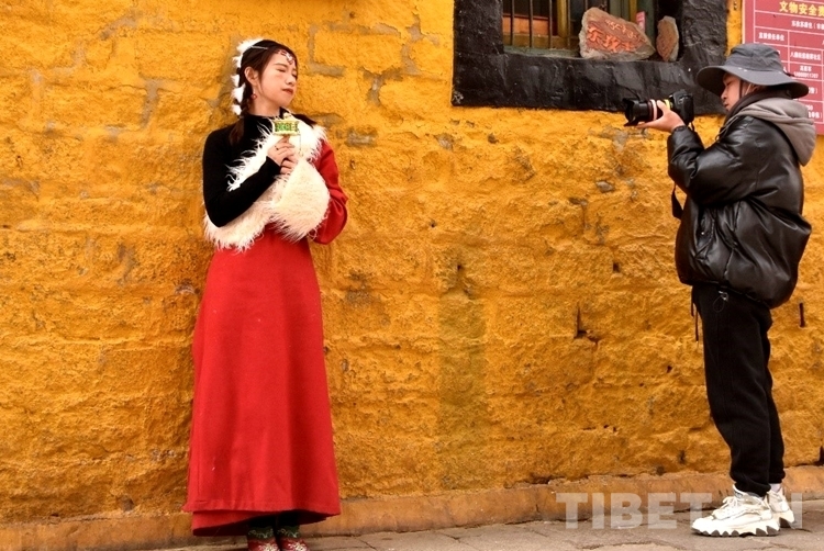 穿藏裝拍照留念現(xiàn)在已成為許多游客赴藏旅行的“標(biāo)配”。在布達(dá)拉宮、大昭寺等拉薩熱門景區(qū)附近,有多家店提供藏裝旅拍服務(wù),為顧客提供多樣化選擇,身著藏裝的四方游客成了鏡頭捕捉的新風(fēng)景。